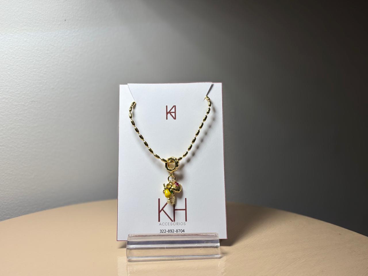 Collar en material rodio; importante cuidar del perfume, cremas y agua.