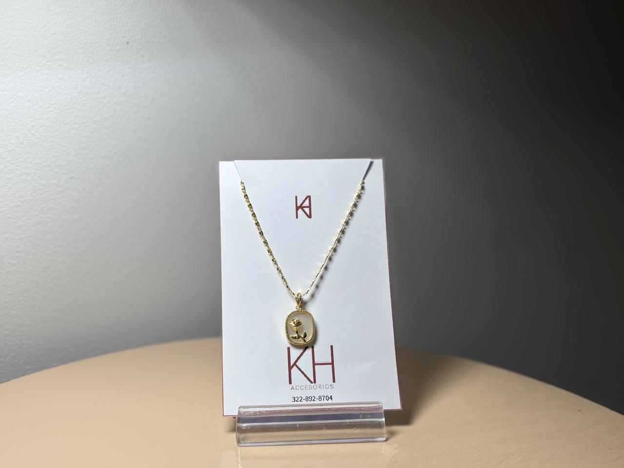 Collar en material rodio; importante cuidar del perfume, cremas y agua.
