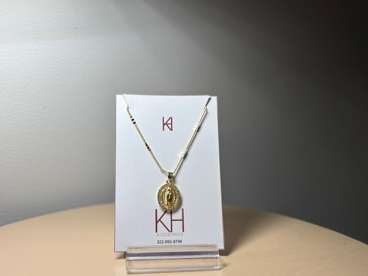 Collar en material rodio; importante cuidar del perfume, cremas y agua.