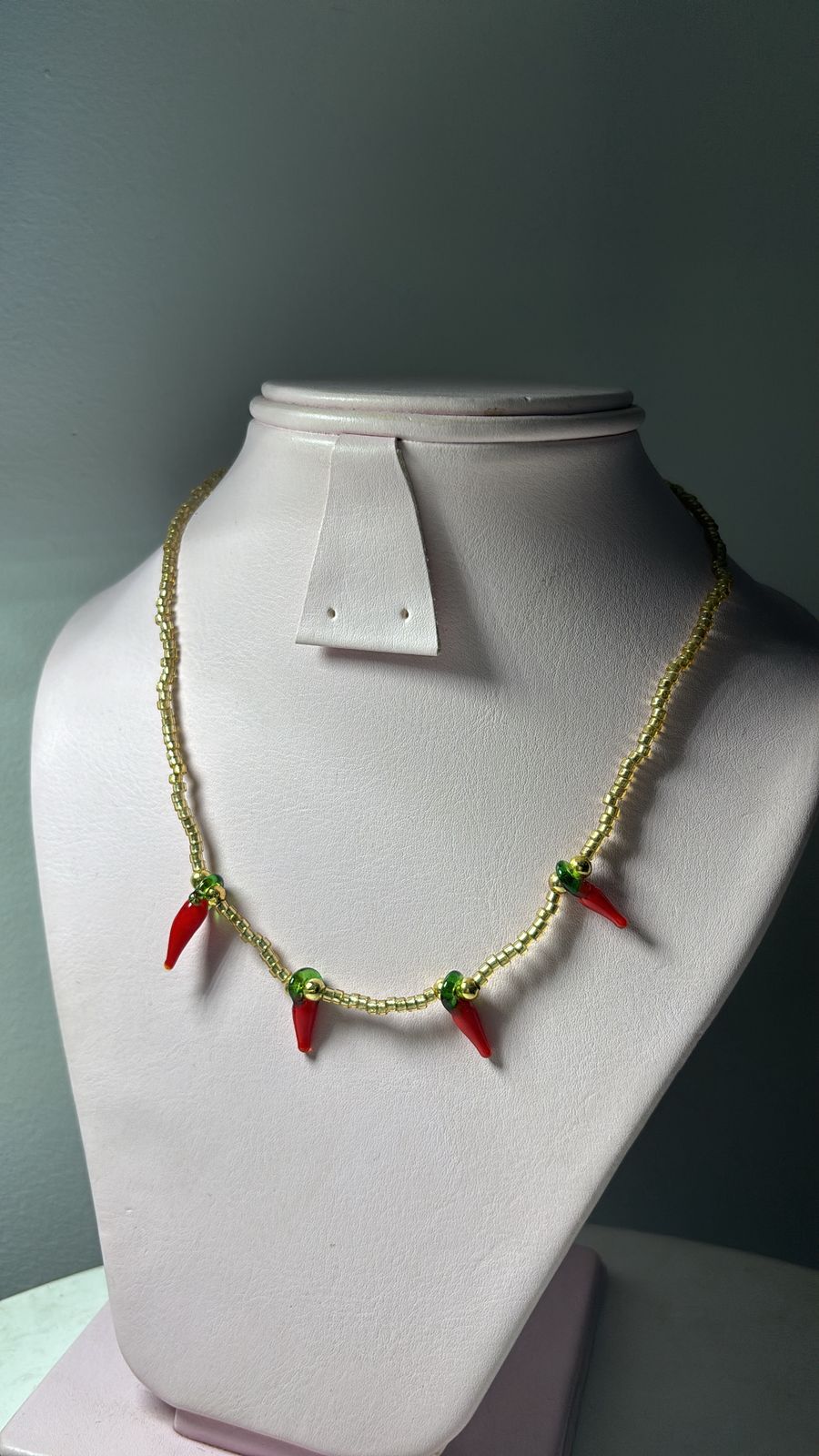 Collar en material rodio; importante cuidar del perfume, cremas y agua.