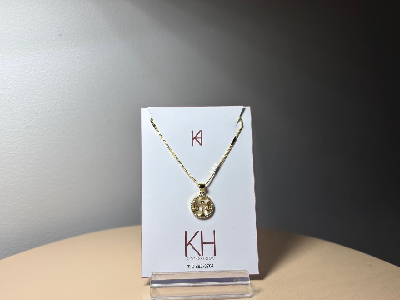 Cadena en acero con dije en rodio del signo zodiacal libra.
