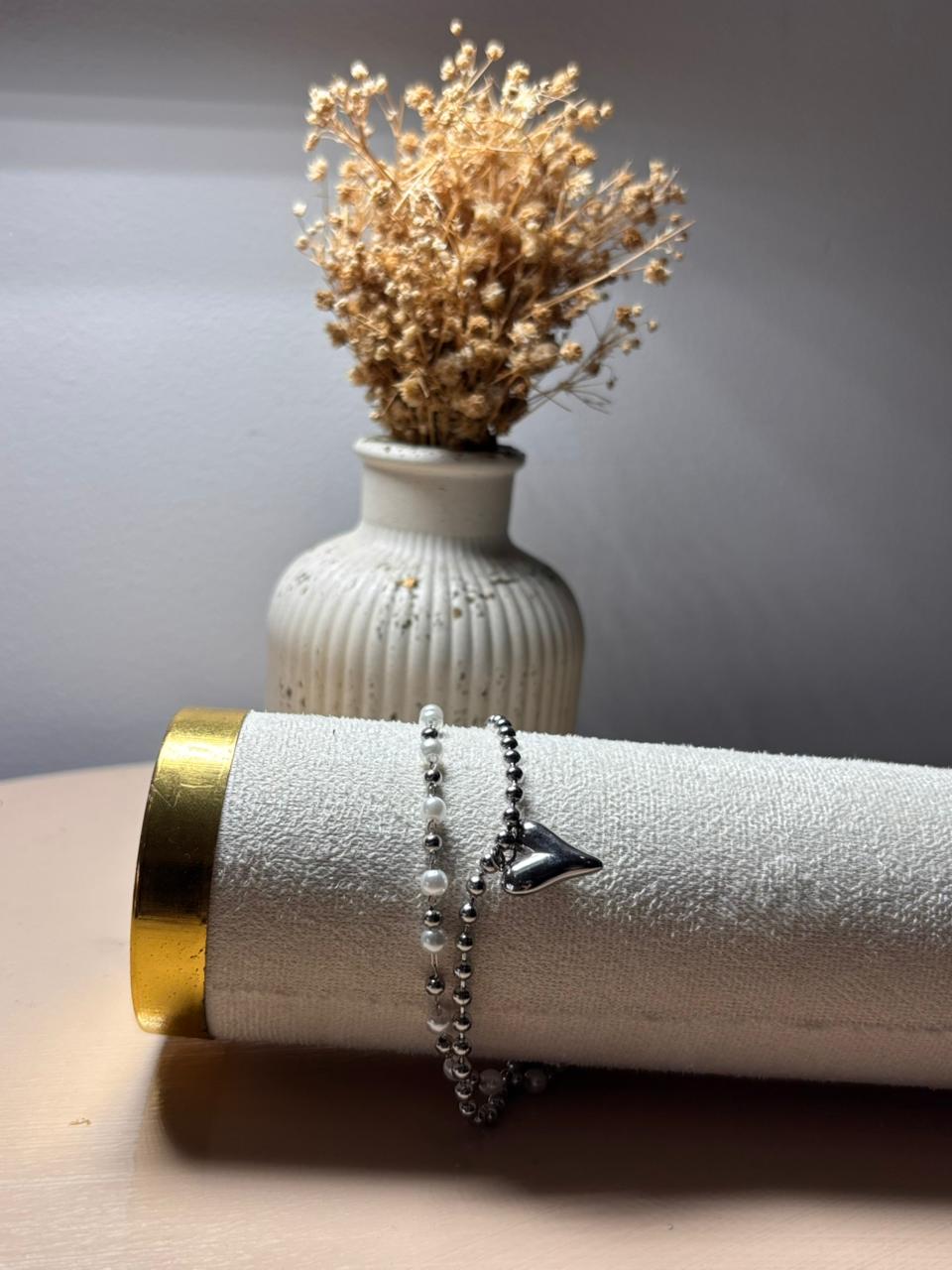 Pulsera en material rodio; importante cuidar del perfume, cremas y agua.
