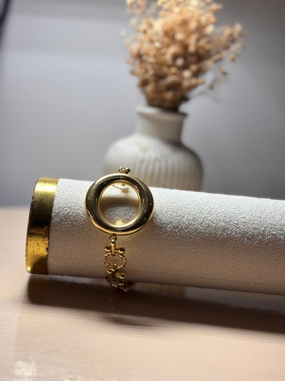 Pulsera en material rodio; importante cuidar del perfume, cremas y agua.