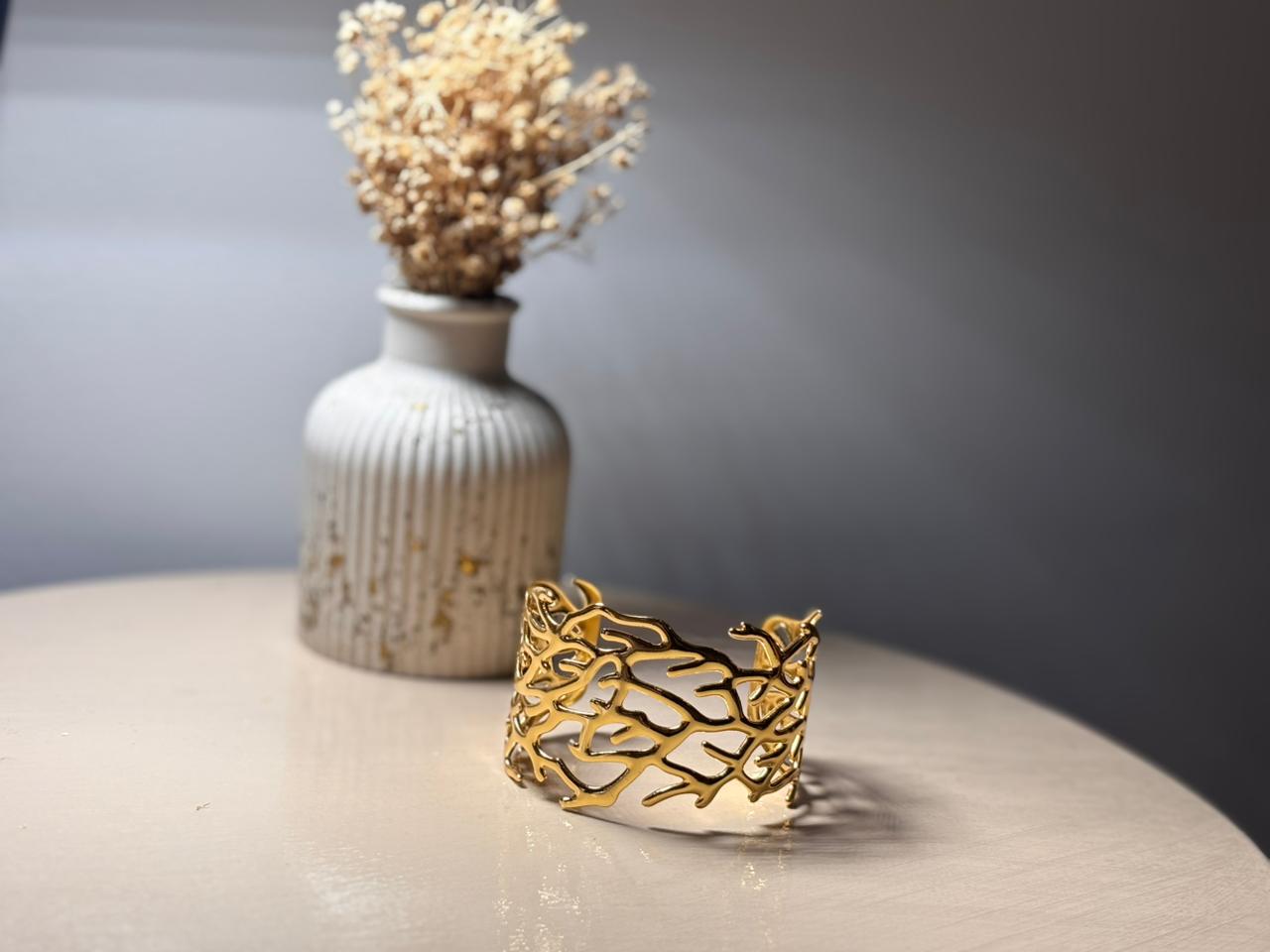 Pulsera en material rodio; importante cuidar del perfume, cremas y agua.