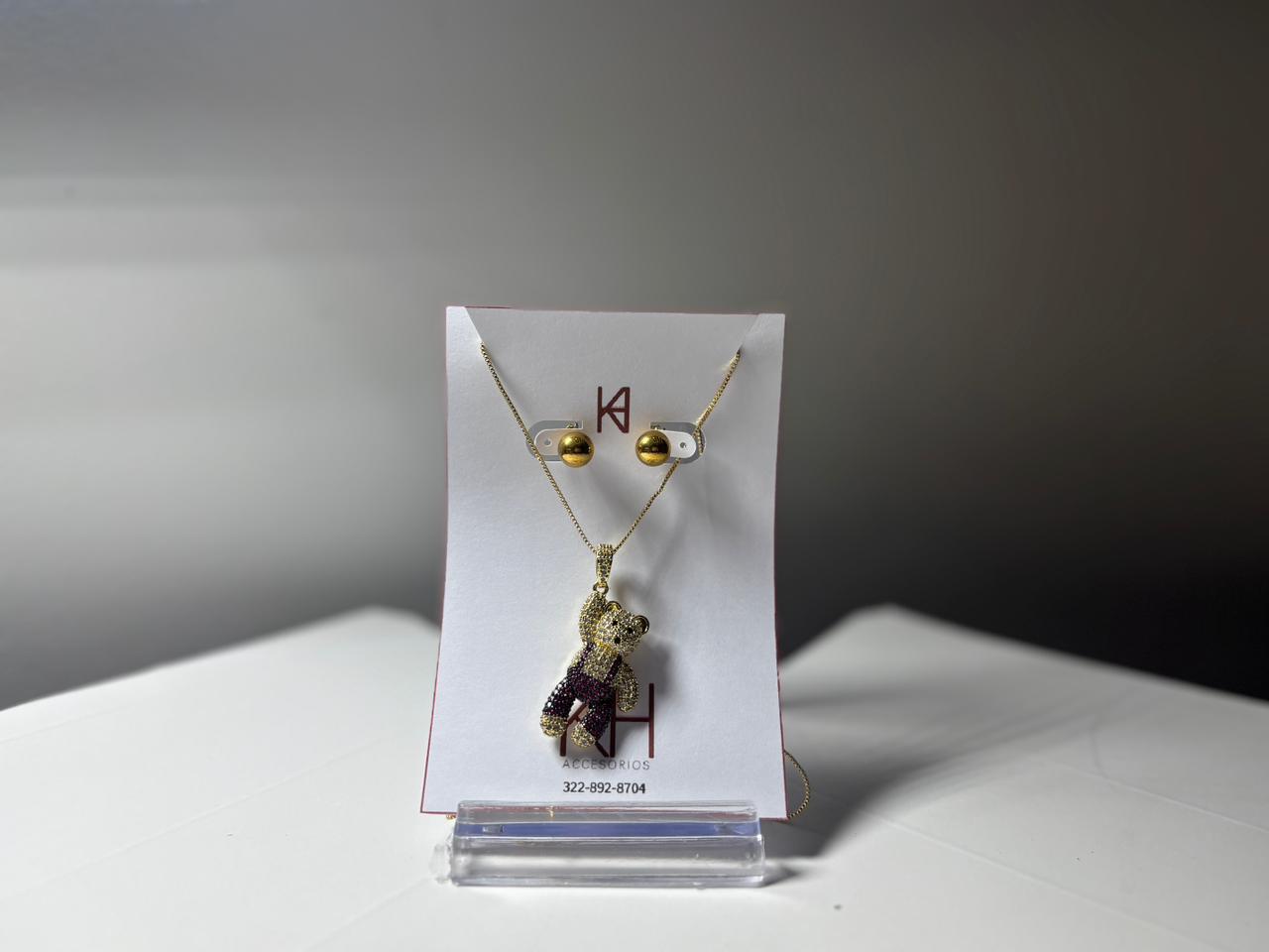 Topos y cadena en rodio; importante cuidar del perfume, cremas y agua.