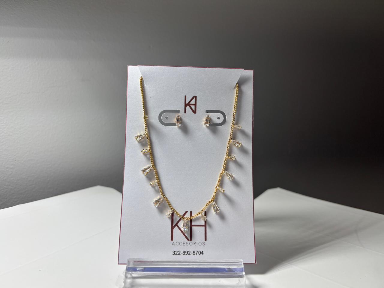 Topos y cadena en rodio; importante cuidar del perfume, cremas y agua.